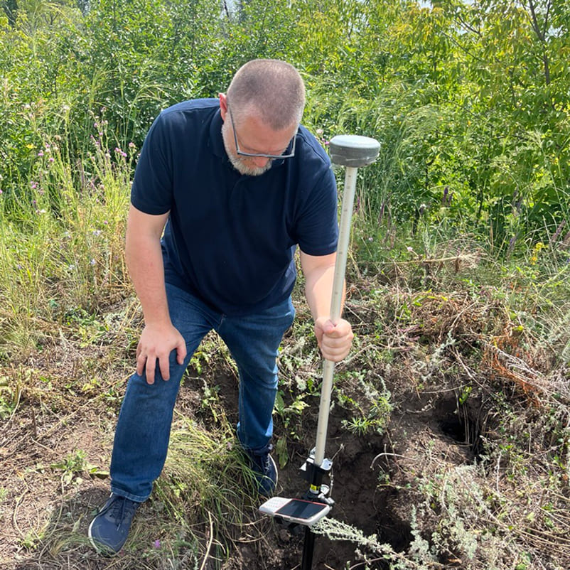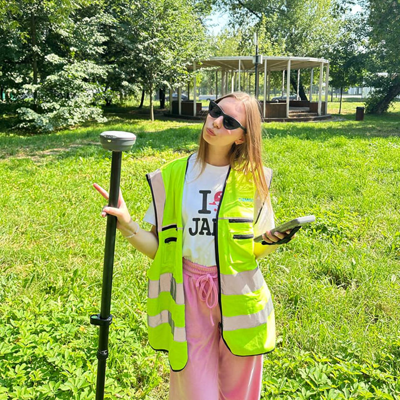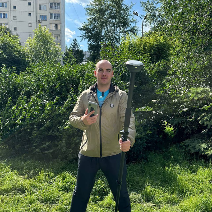 Геодезист видит путь на экране и сразу идёт точно к цели