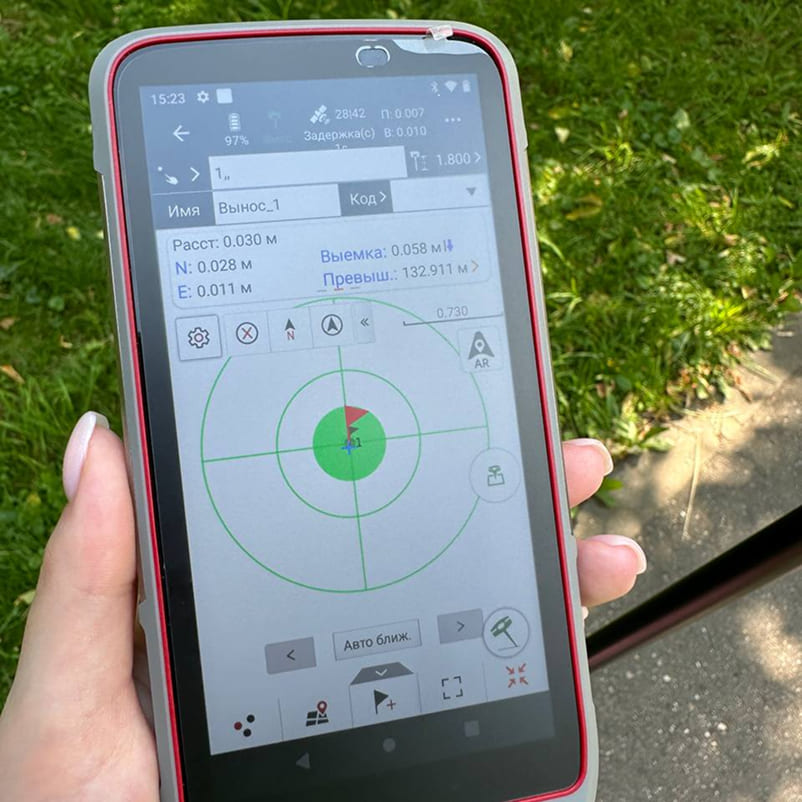 Следите за приближением к заданной точке прямо на экране приложения, чтобы найти ее точное положение. Есть различные варианты отображения информации на экране в режиме выноса для быстрого поиска точек на местности.